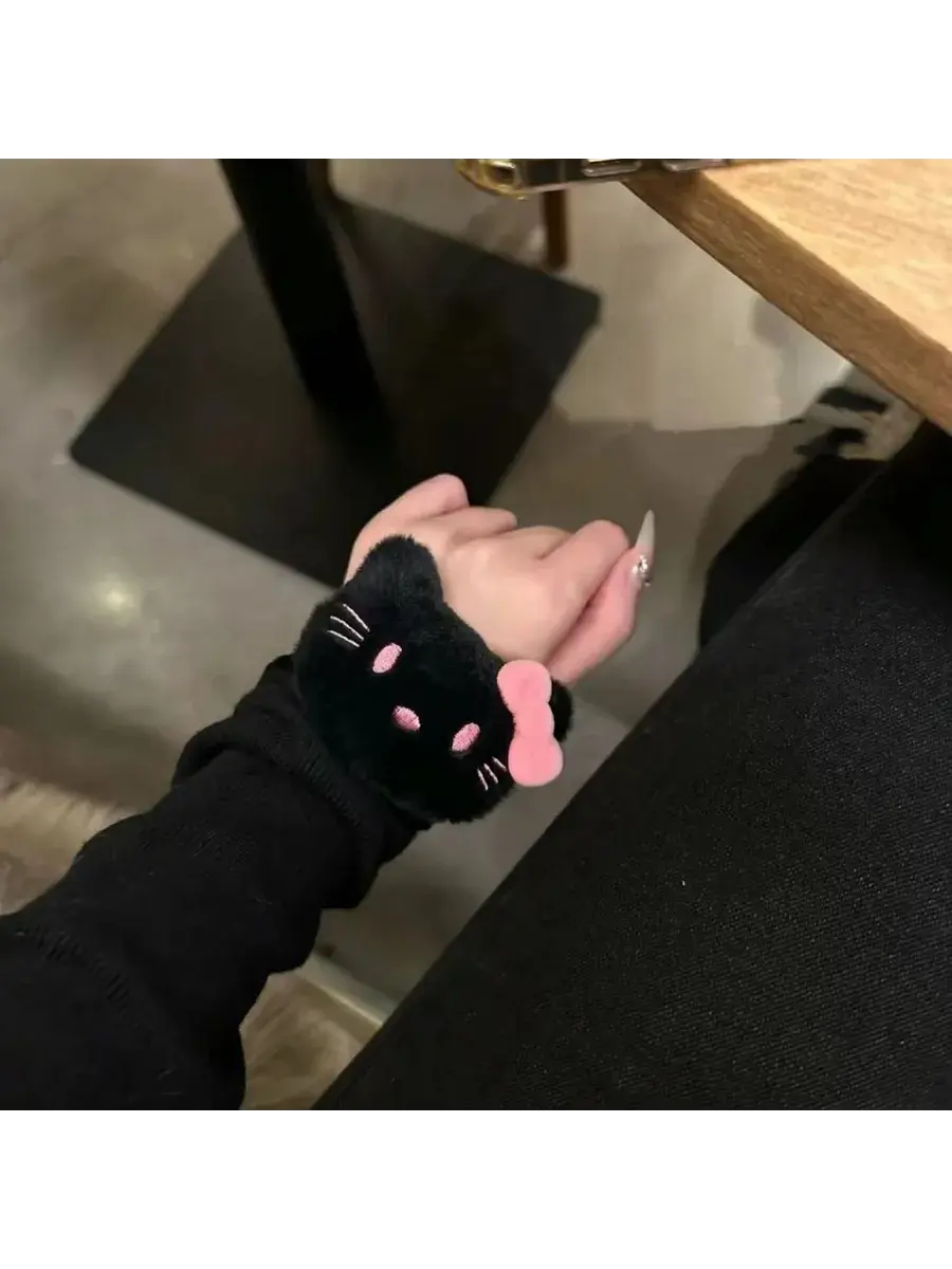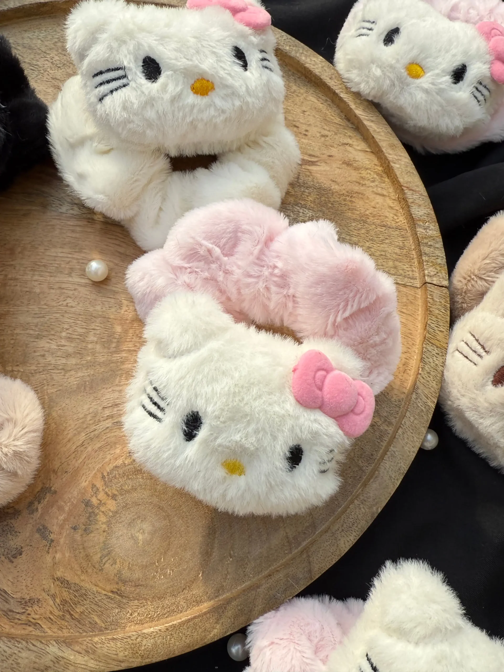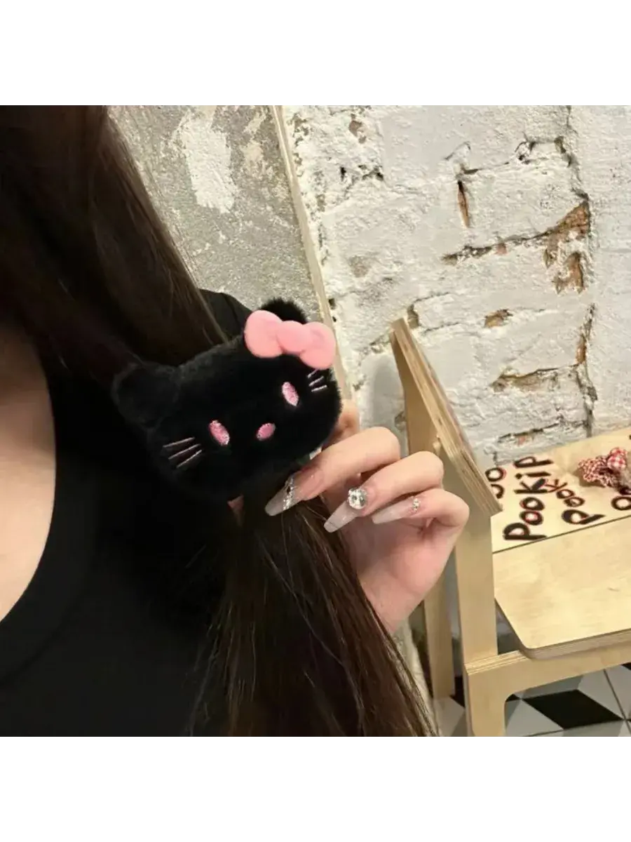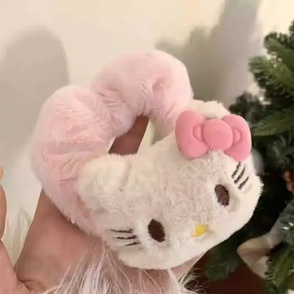 Available in four beautiful shades — white, black, brown, and pink — it’s ideal for creating that soft kawaii girl look while keeping your hair comfortably secured. Whether worn as a hair tie or styled as a cute wrist accessory, this Korean plush scrunchie brings playful Hello Kitty vibes to your everyday outfits. A must-have for Sanrio merch lovers and anyone who adores Korean-inspired hair accessories. Shop now and add extra cuteness to your hair accessories wardrobe ✨.