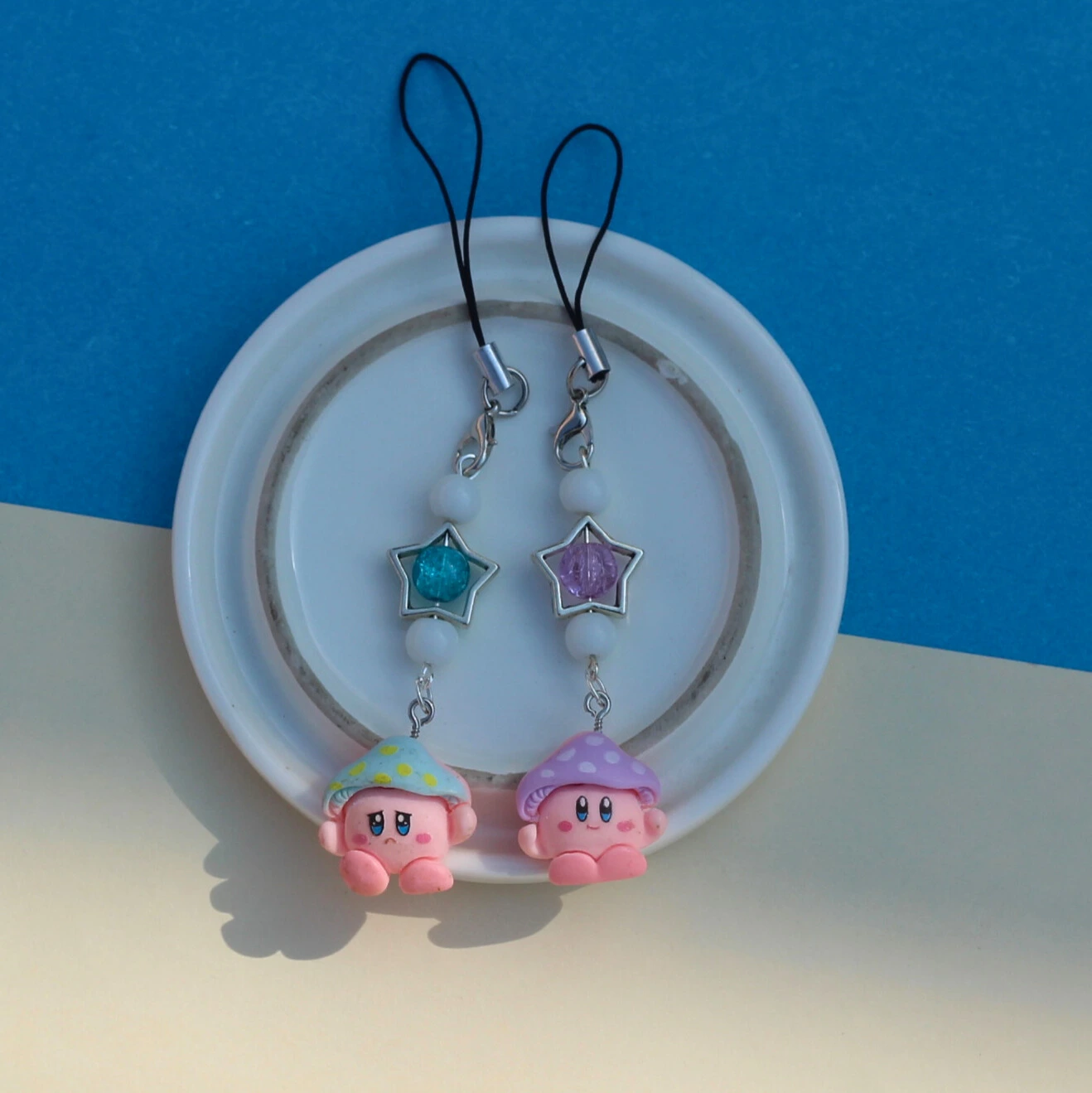 Add a dreamy kawaii touch to your everyday accessories with this Cute Kirby Phone Charm, perfect for fans of adorable gaming characters and aesthetic accessories.