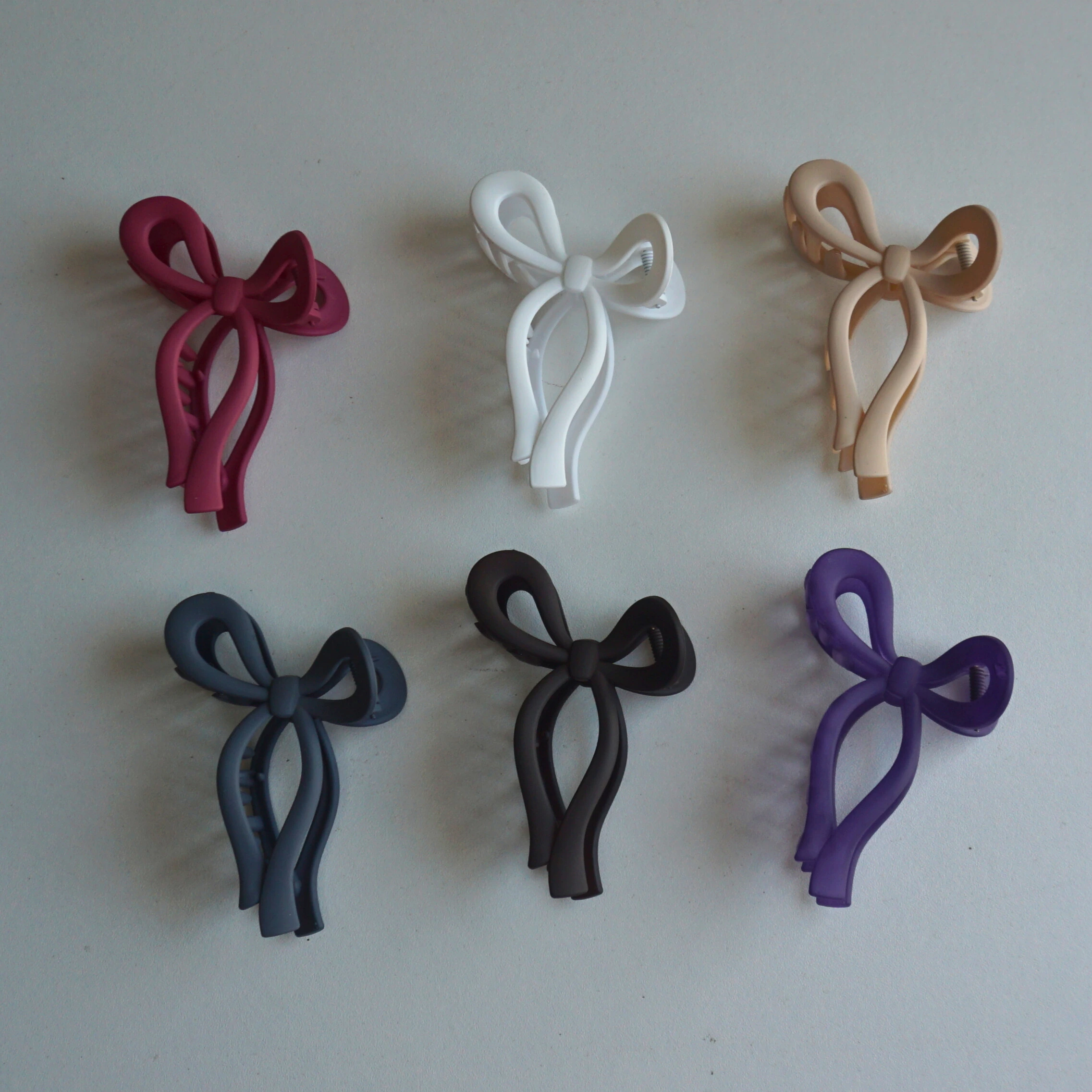 Enhance your hairstyles with the Matte Conquette Bow Hair Claws, designed to embody the soft and feminine conquette aesthetic. Featuring a delicate bow-knot design and a smooth matte finish, these hair claws will instantly elevate your everyday look—perfect for college, work, brunch, or a date.