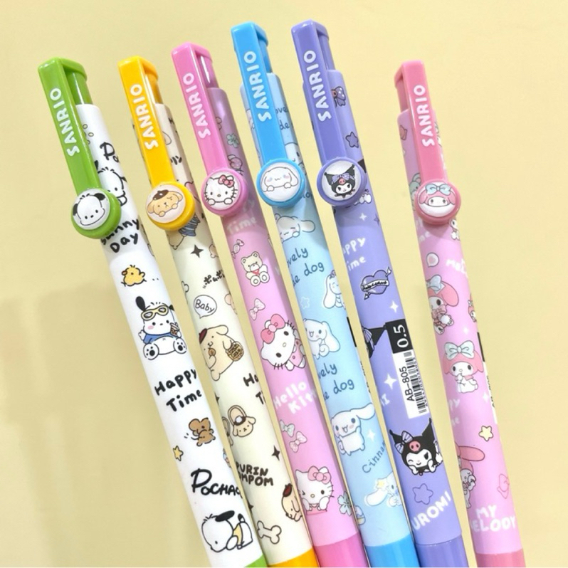 Add a pop of cuteness to your stationery collection with this set of 6 ballpoint pens, each featuring a different Sanrio character! From Kuromi to Cinnamoroll, Hello Kitty, and more – every pen is detailed with adorable prints on the body and a matching character badge on the clip.