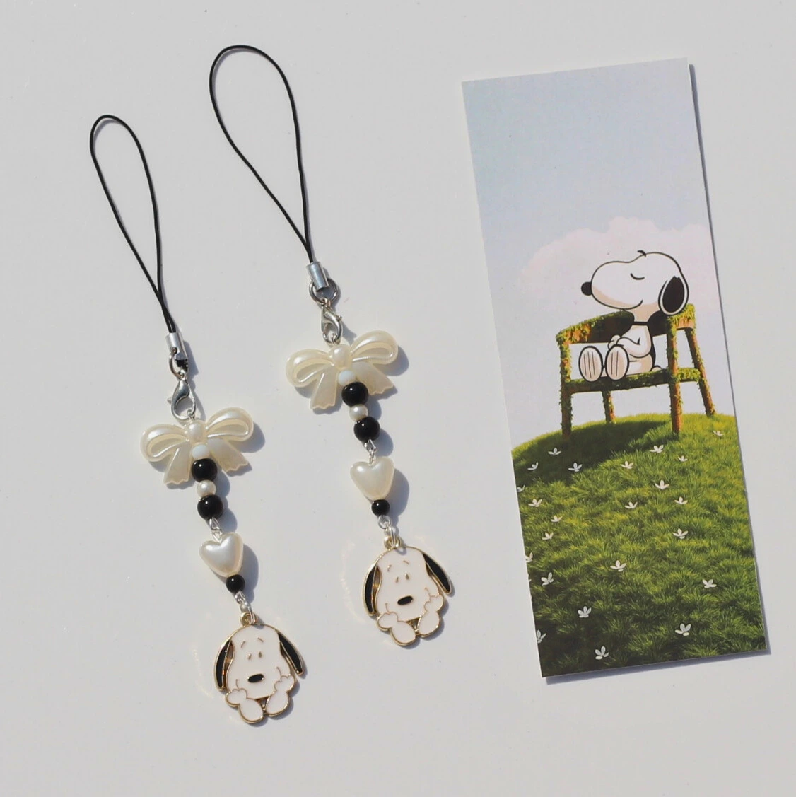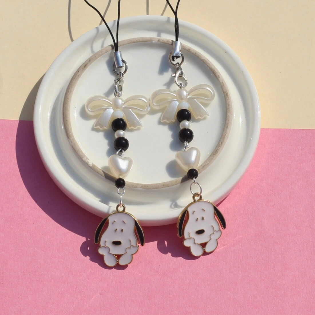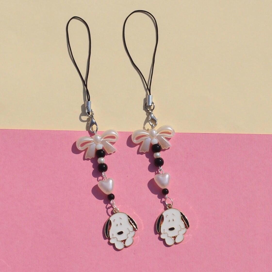 Meet the phone charm your inner child needs — our Snoopy Enamel Phone Charm! Featuring your beloved Snoopy in a glossy enamel finish, this phone charm is decorated with a Big pearl bow and a cute heart bead that instantly adds a soft, aesthetic touch.
