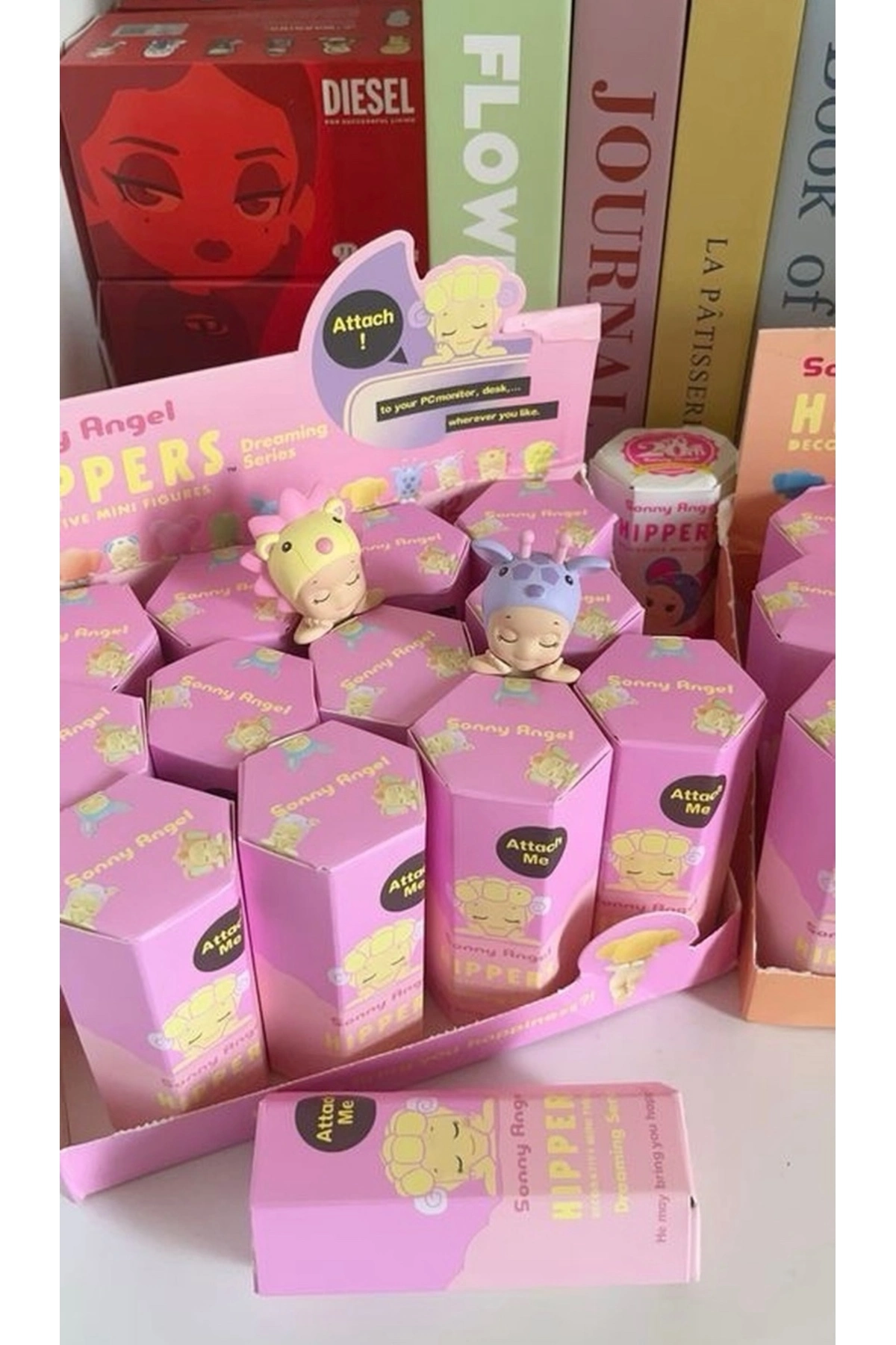 Designed for easy attachment to your phone, laptop, tablet, or desk edge, these hippers allow your Sonny Angel to peek out cutely wherever you place them. Each box contains One random Dreaming Series hipper, making every unboxing an exciting surprise. Measuring approximately 8 cm tall, they are compact yet eye-catching.