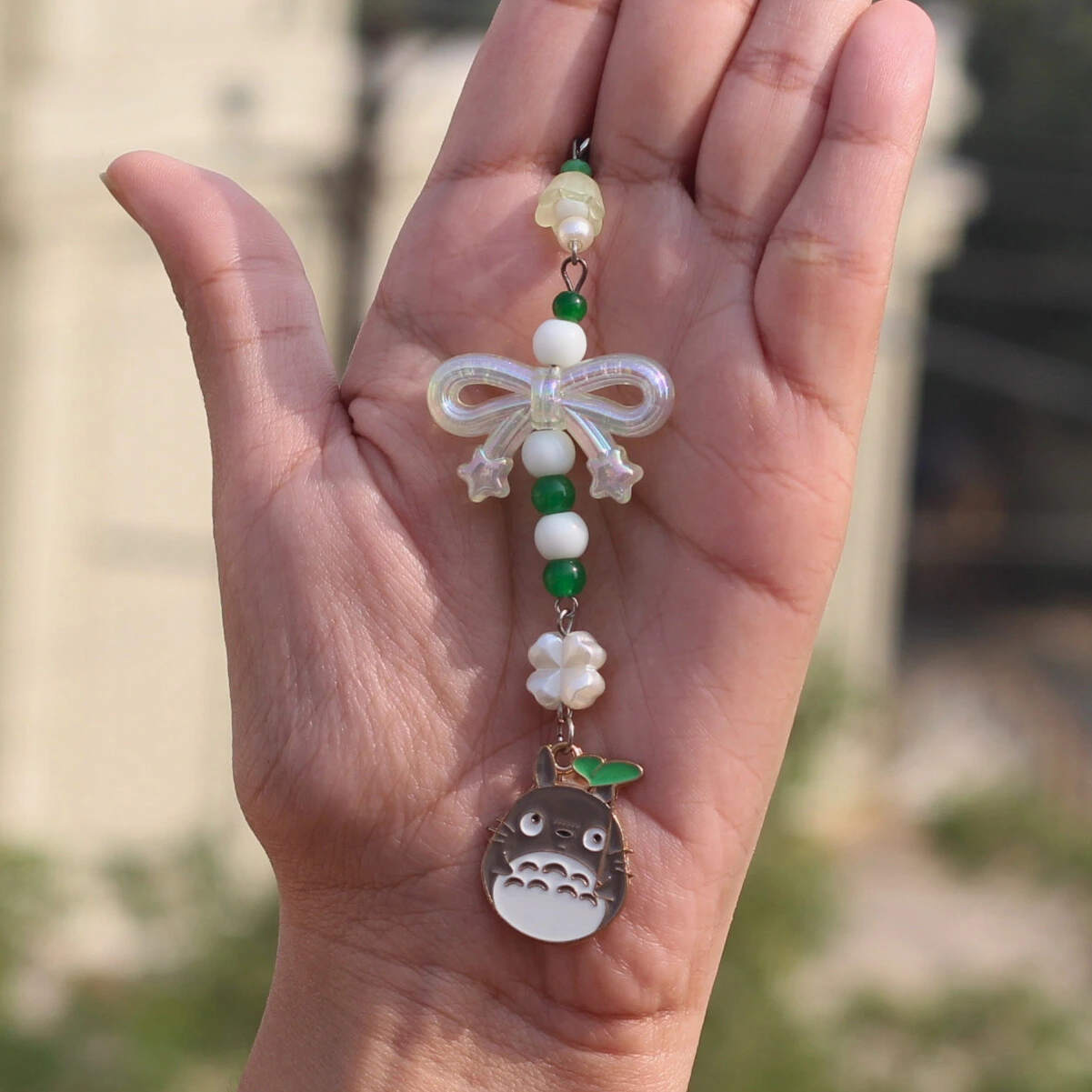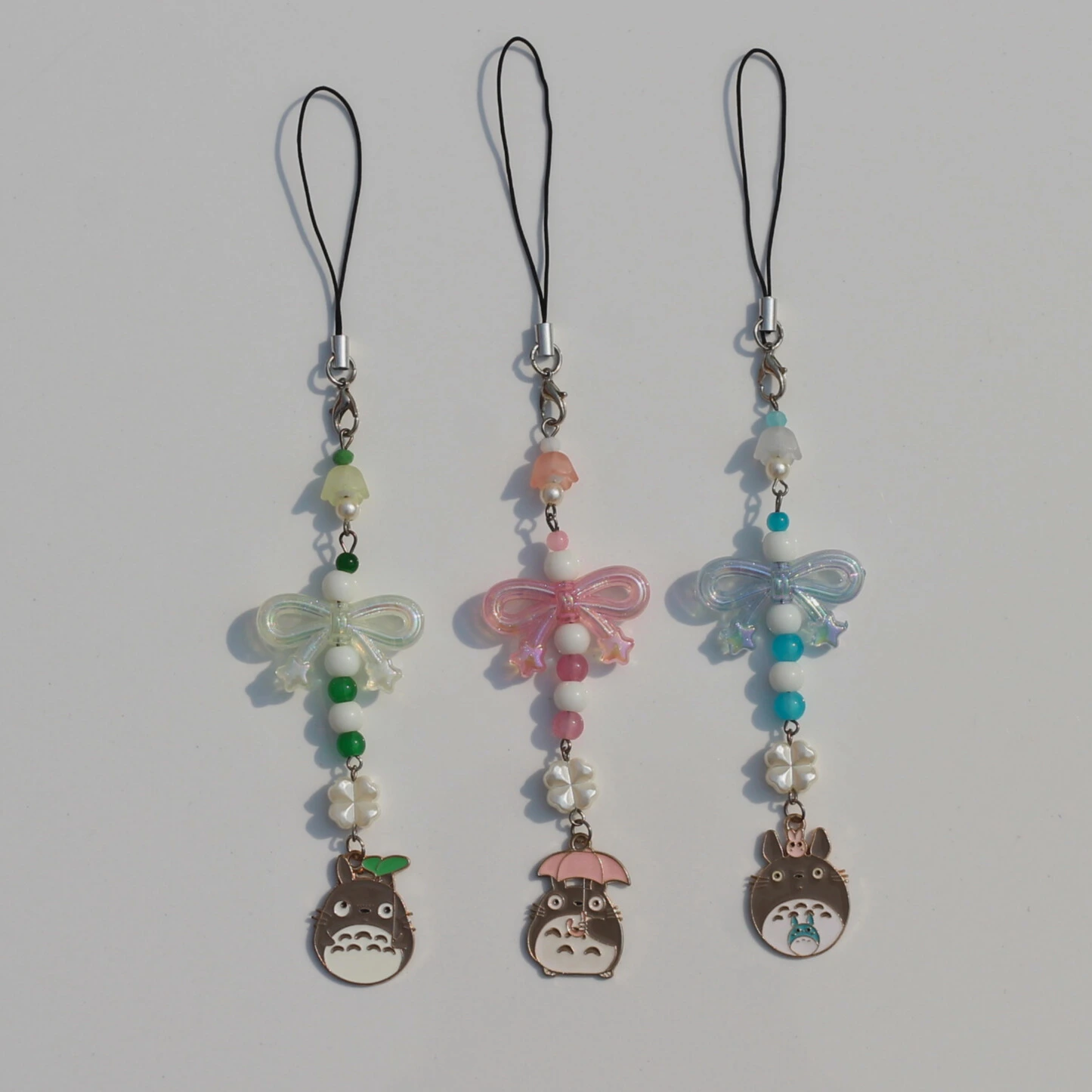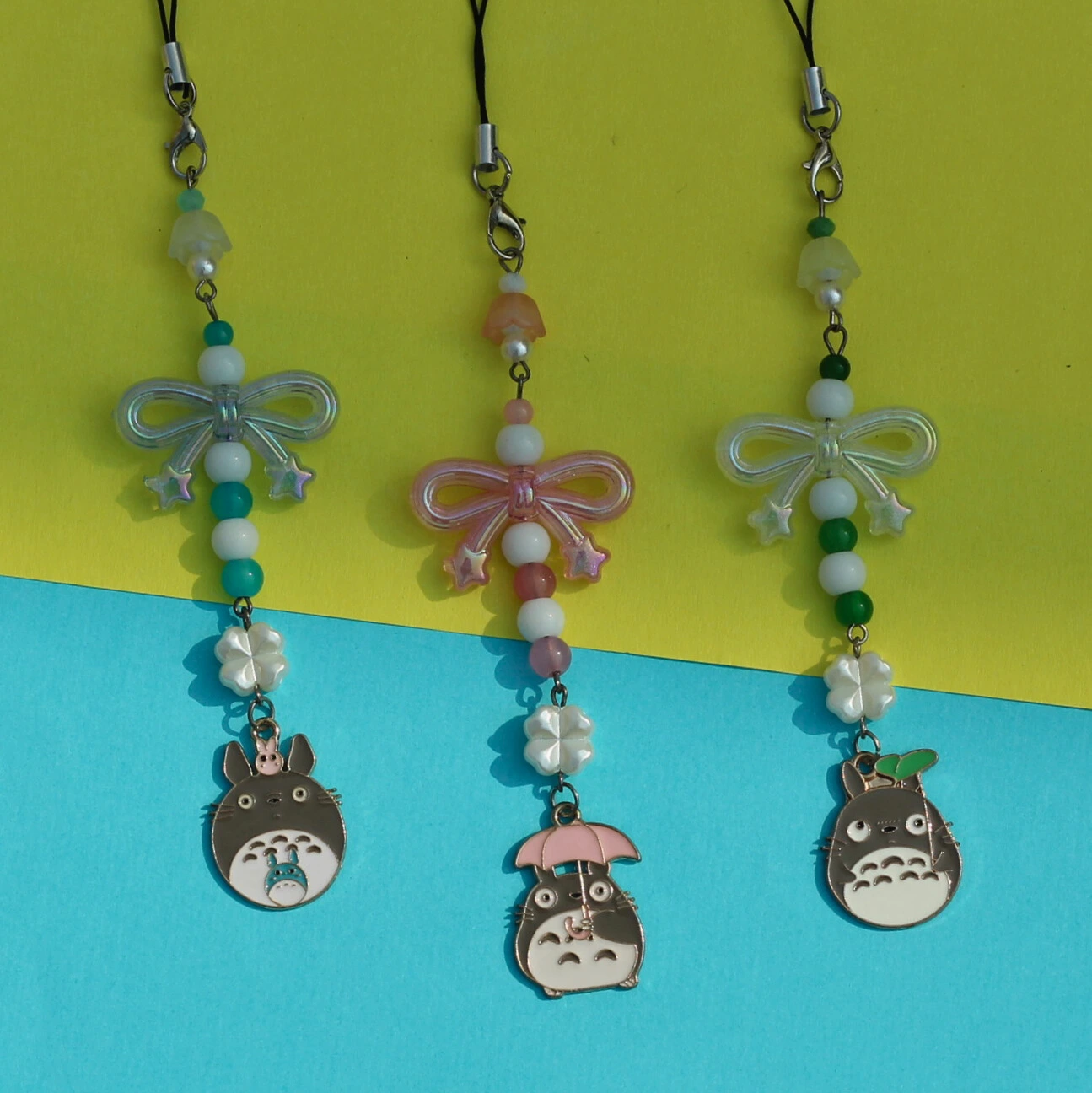 Add a touch of Studio Ghibli magic to your life with this adorable Totoro Phone Charm! Featuring the beloved character from My Neighbor Totoro, this Enamel charm is crafted with aesthetic pearl clovers, shiny star-knot bows, and matching flower beads, making it look as though it belongs on a Pinterest board. 🌸