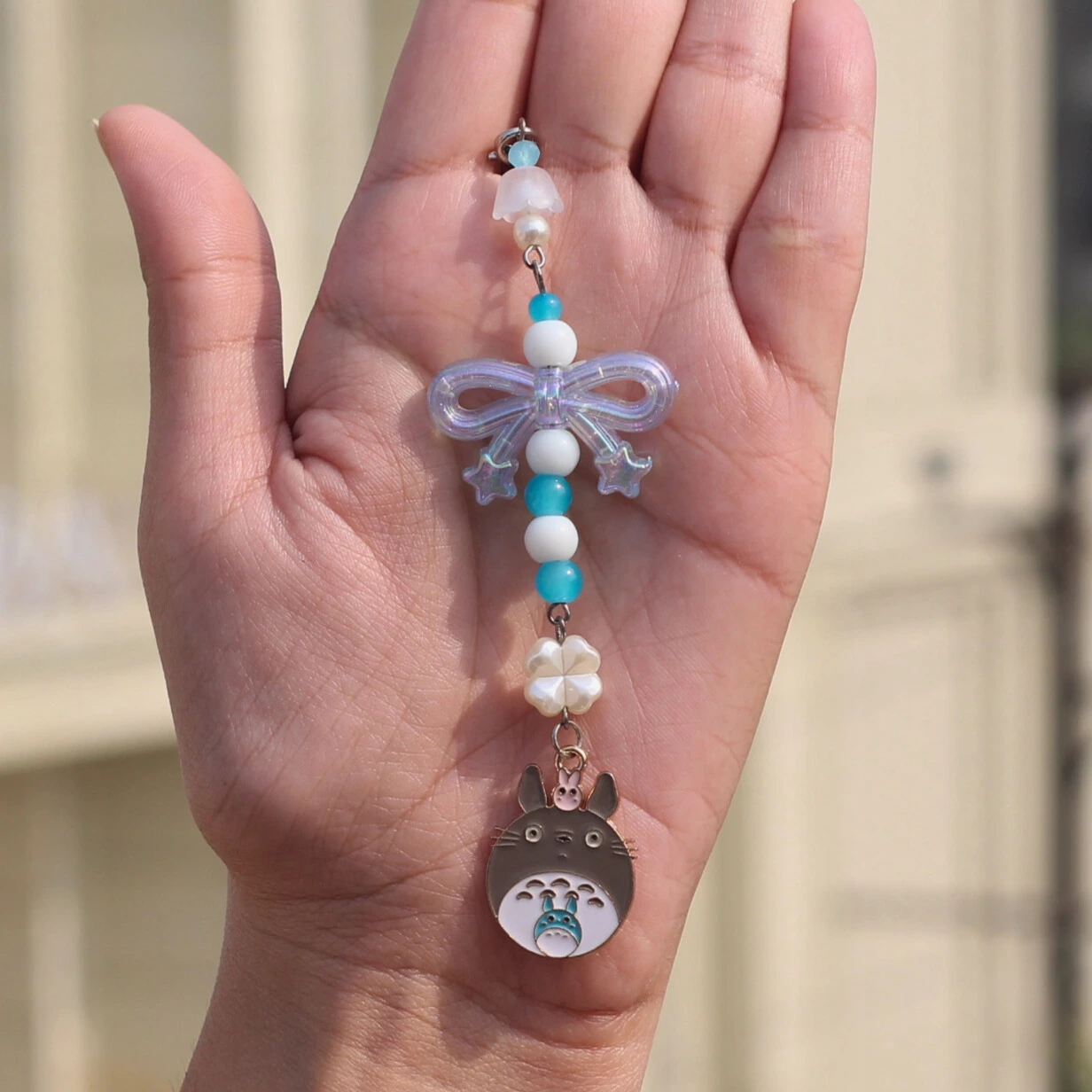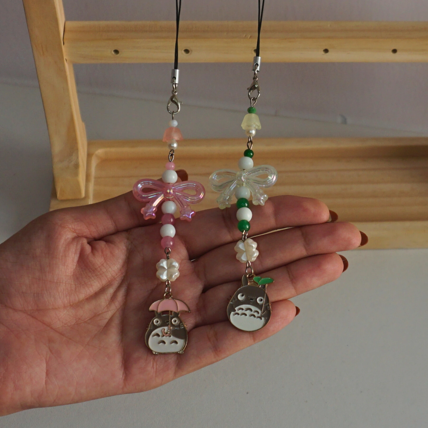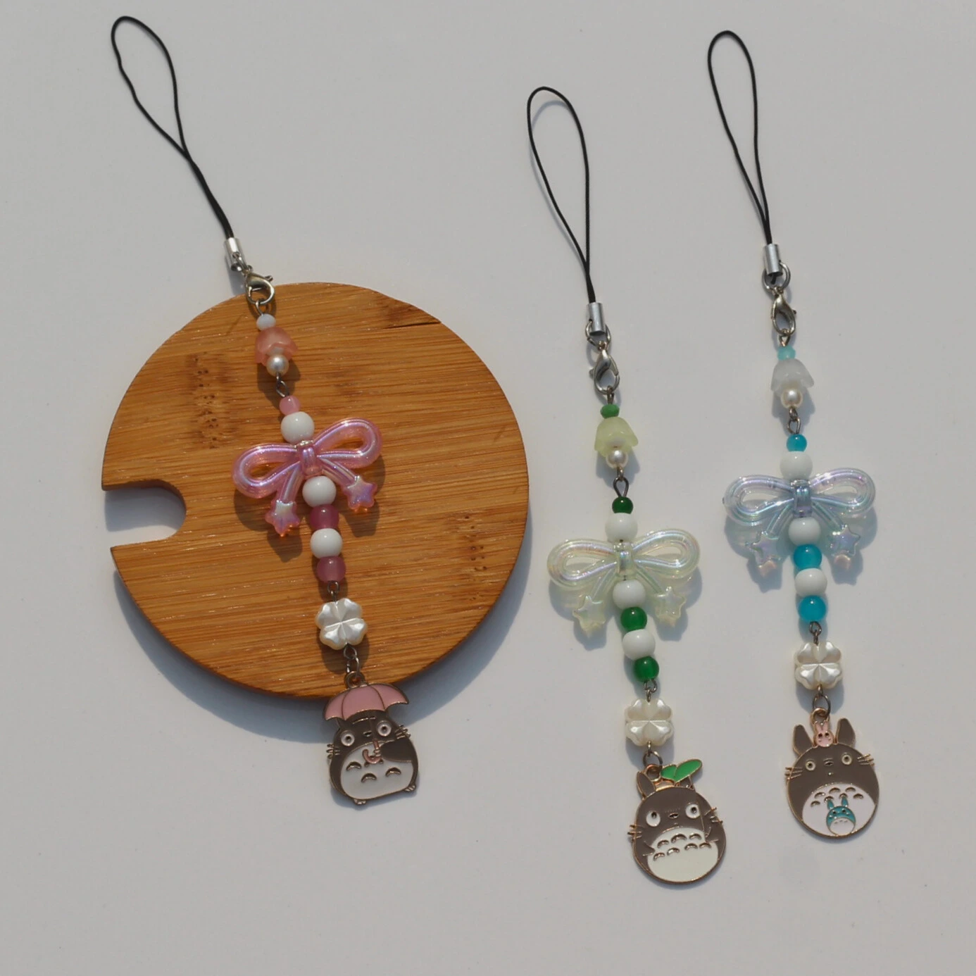 Add a touch of Studio Ghibli magic to your life with this adorable Totoro Phone Charm! Featuring the beloved character from My Neighbor Totoro, this Enamel charm is crafted with aesthetic pearl clovers, shiny star-knot bows, and matching flower beads, making it look as though it belongs on a Pinterest board. 🌸